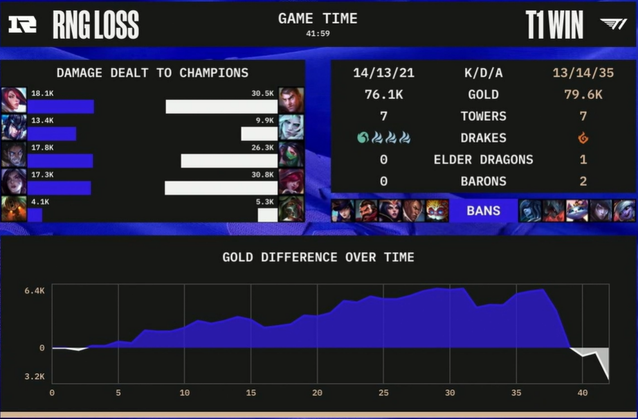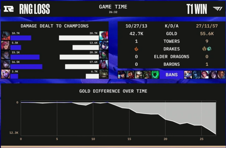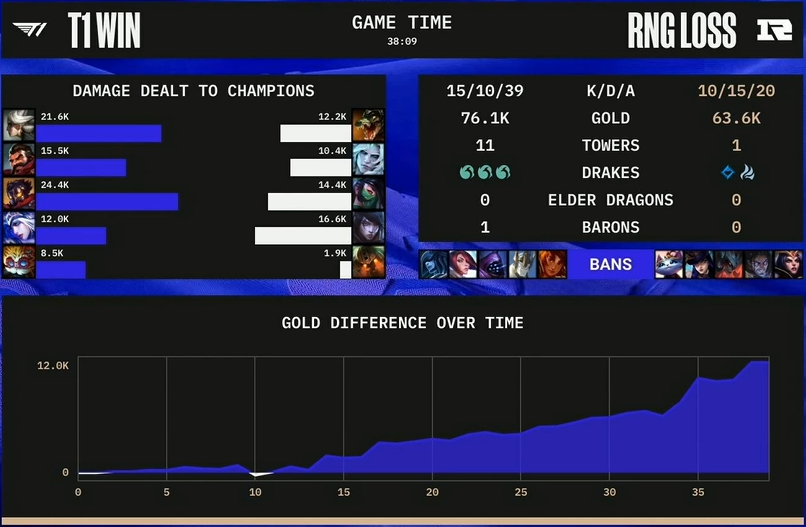 T1이 누구에게도 지지 않을 것만 같은 경기력을 보여주며 RNG를 완파했습니다.