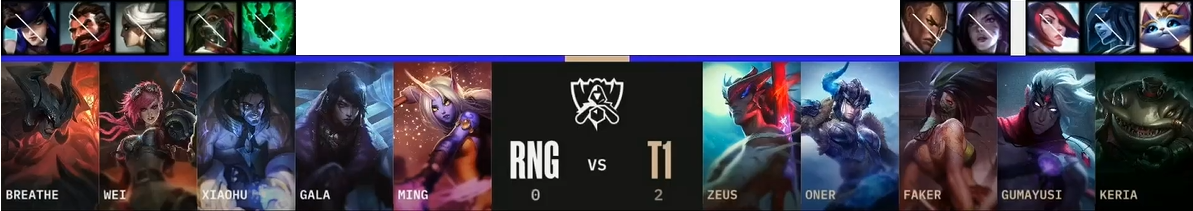 TOP : 제우스(Zeus) JUG : 오너(Oner) MID : 페이커(Faker) BOT : 구마유시(Gumayusi) SUP : 케리아(Keria)