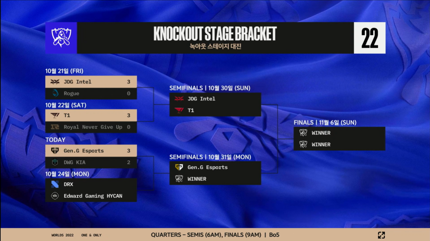 | 2022 롤드컵 8강 대진 공개 및 일정! (0) | 2022.10.17 |